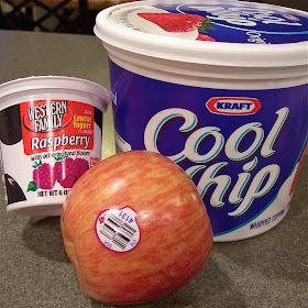 Like I said, pretty easy.  You could just mix up the yogurt and Cool Whip and use it as a fruit dip, but I prefer it this way for maximum yogurt covered apple goodness.  Yum.