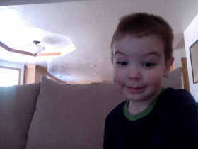 I laughed so hard when I discovered these shots on my computer.  My three and a half year old actually posing, on his own, for some Photo Booth shots: