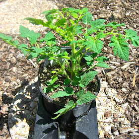 A couple of weeks ago, my awesome sister gave me some tomato plants that she had started from seed. When I received them from her, it was a bit cold to put them in the ground, so I waited.....a bit too long.  By the time I was ready to put them in the ground, they were looking pretty shabby.  I hadn't taken very good care of them.  I went ahead and planted them anyway, though I had written off all but one of them.  After two weeks of care, here's the break down of my 4 tomato plants: