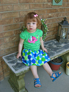 The t-shirt doesn't match it perfectly and I didn't brush her hair, but she is still adorable. I have a vision of creating a t-shirt to match it, but that may be another two months down the line.