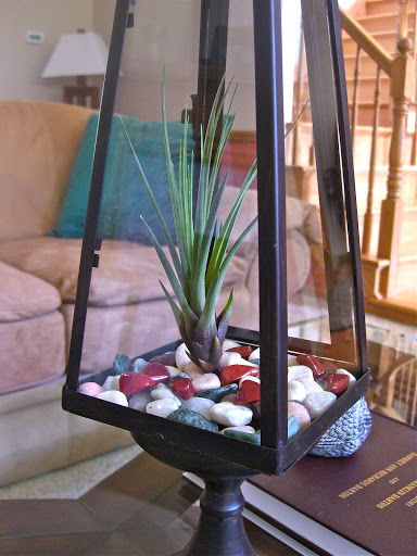 Any lantern would do, but I really liked the look of this lantern that I purchased from a local boutique. I threw in some decorative rocks and spent some time picking out a cute little air plant to put inside.