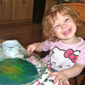We had fun with a new rainy scorching day activity this last week.  This was inspired by an art project that I've seen several times floating around Pinterest.  The nice thing about this project is that all of the materials needed were already in my pantry.