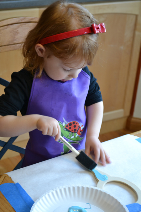 I was a little afraid to let her do painting with acrylic paint on her own, but I let her anyway. I don't know what I was worried about. She did an awesome job. I did have to remind her not to paint her own hands a couple of times, but other than that, she proved to be an excellent little painter.