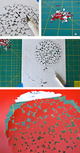 DeleteHi, hope it's not too late to post a question! I have been wanting to try this for ages but didn't know where to start so thank you for the excellent tips. However, I was just wondering how the red sheet and your paper sheet stay together whilst cutting - do you have to stick them together? Many thanks
