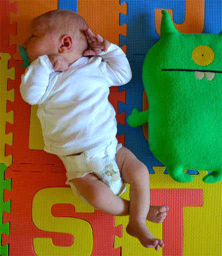 Like most newborns, Teddy Bear is mostly a lump. A eating, pooping, sleeping lump. One thing I can say for sure is that he really likes to eat (every two hours like clockwork even in the night) and it is showing in his growth (and in number of diapers, yikes)!