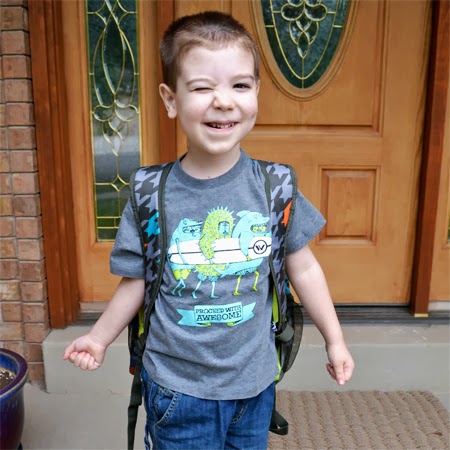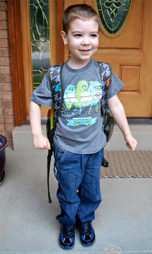 So excited for him! He's definitely ready for Kindergarten... actually, he's probably ready for third grade. Ha! Is he going to an all-day kindergarten, or just half-day? All the schools in Lawrence went to full-day kindergarten a few years ago.