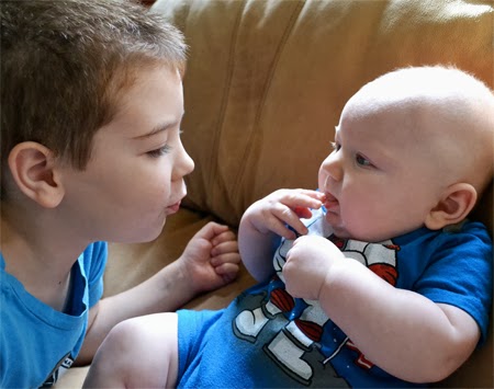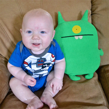 He is so ticklish that I can hardly change his clothes without him dissolving in fits of giggling. Buddy and Jellybean find this endlessly entertaining and he in turn is endlessly entertained by them. He has begun squealing randomly just out of pure happiness.