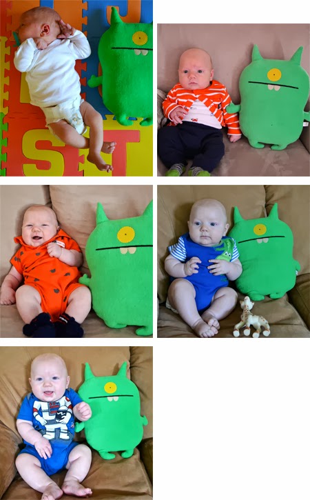 Teddy Bear is, for the most part, a delight. He has started really grabbing for toys and has even made some moves towards being able to turn over. Which may be a real feat considering his girth.