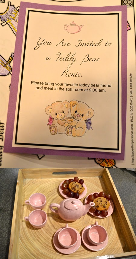 Several weeks ago, Buddy got an invitation to participate in a teddy bear picnic at kindergarten. The night before, while Buddy was carefully choosing his teddy bear (he picked Wooshie Bear btw), I could tell that Jellybean was extremely upset that she was not going to get to go to the picnic. So, I decided to invite her to a teddy bear picnic at home.