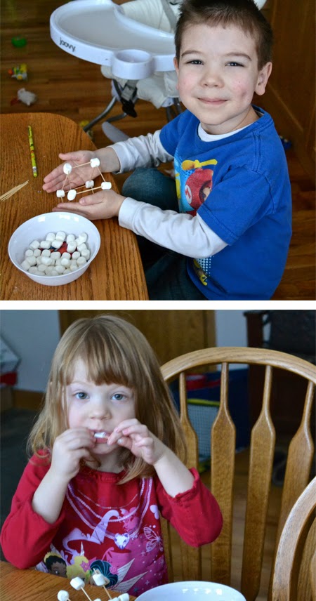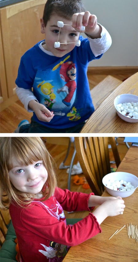 Trying to stay busy indoors, doing a little marshmallow building with two of my favorite kids: