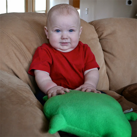 At 10 months, Teddy Bear is such a smart little guy. He seems pretty focused and I can see his little mind working and figuring things out. One day I was tossing an egg shaker up in the air. When I handed it to him, he tried to copy what I'd been doing. He is also starting to recognize toys that are alike or that are part of a set. Teddy Bear loves music and especially loves when I turn on the music on my phone and let him hold it. I love, love reading to him. It is so fun when he finds a picture amusing in one of his books. There is a particular picture that shows three animals, all holding teacups on their heads. That always seems to elicit a chuckle from him. He is such a sweetheart.