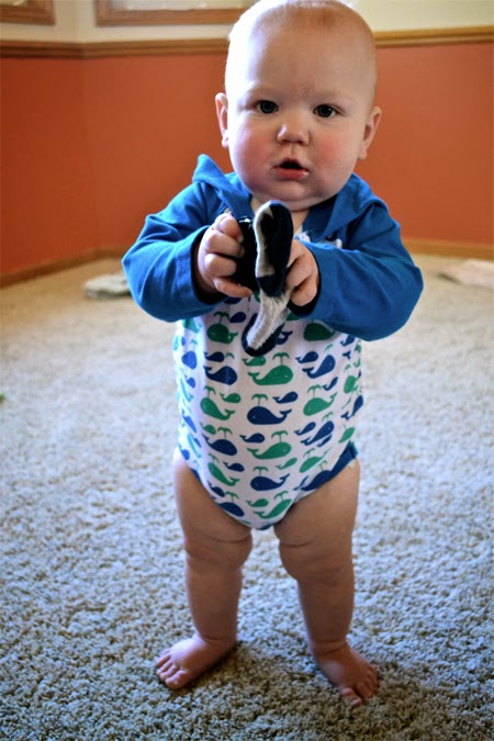 Oh my gosh, that first picture of him standing is adorable! I love that kid. Coleman hates getting his nose wiped, too, and he's not always cooperative when we change his diaper. I wish these two could play together more often!